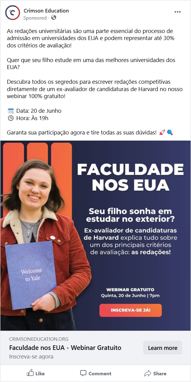 Entering Brazil’s competitive US/UK admissions consulting market in 2018, Crimson Education had zero brand recognition against established players. The core challenge was to rapidly generate a high volume of truly qualified leads for a premium service ($20k+ ACV) while building brand awareness and establishing market authority, all within a controlled budget. We needed a sophisticated PPC strategy that could simultaneously capture high-intent prospects and educate a broader audience.